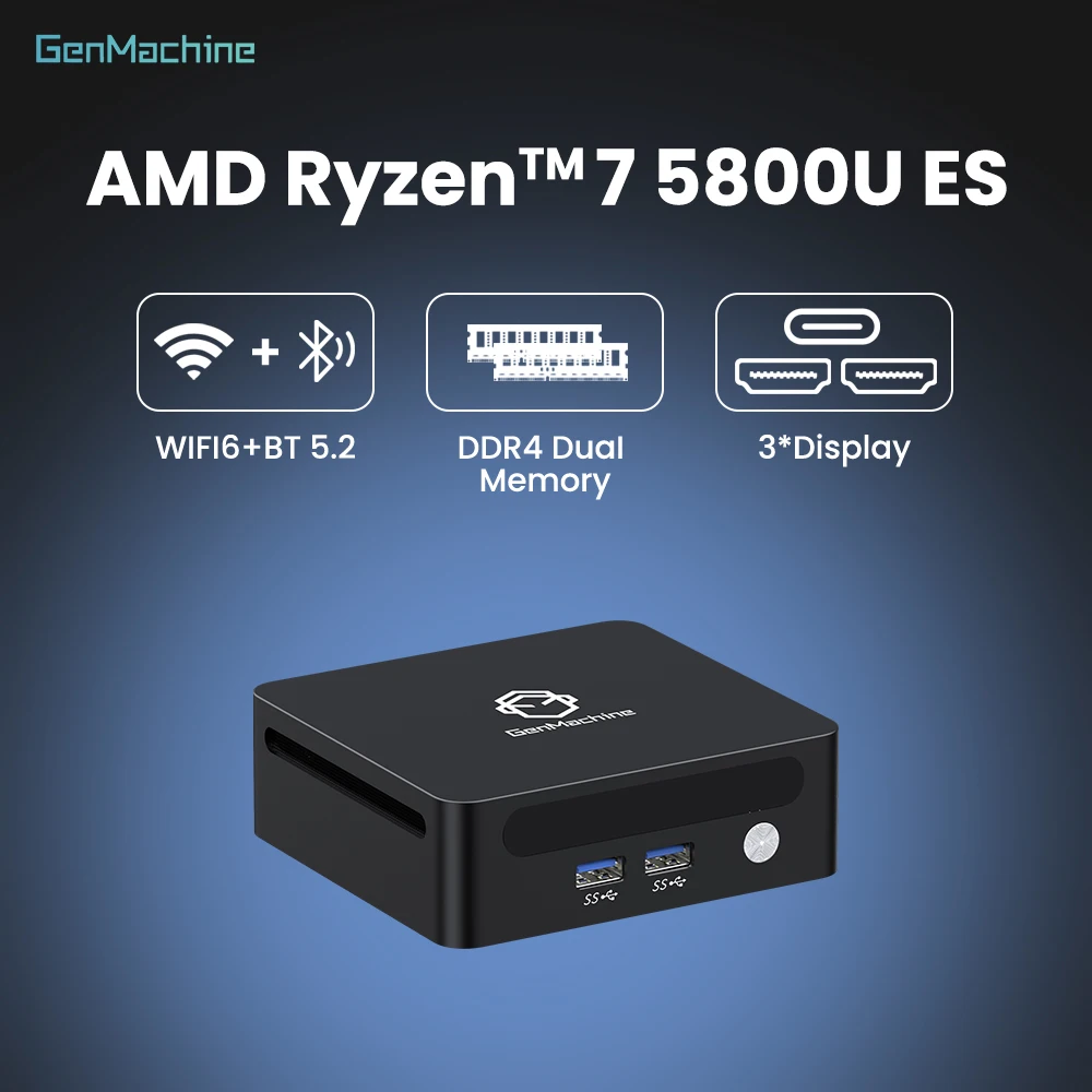 GenMachine AMD Ryzen 7 5800U ES Windows 11 MINI PC 8 Core 16 Thread TDP 15W DDR4 SSD WIFI6 BT5.2 Gaming Pc Diy Gaming Computer